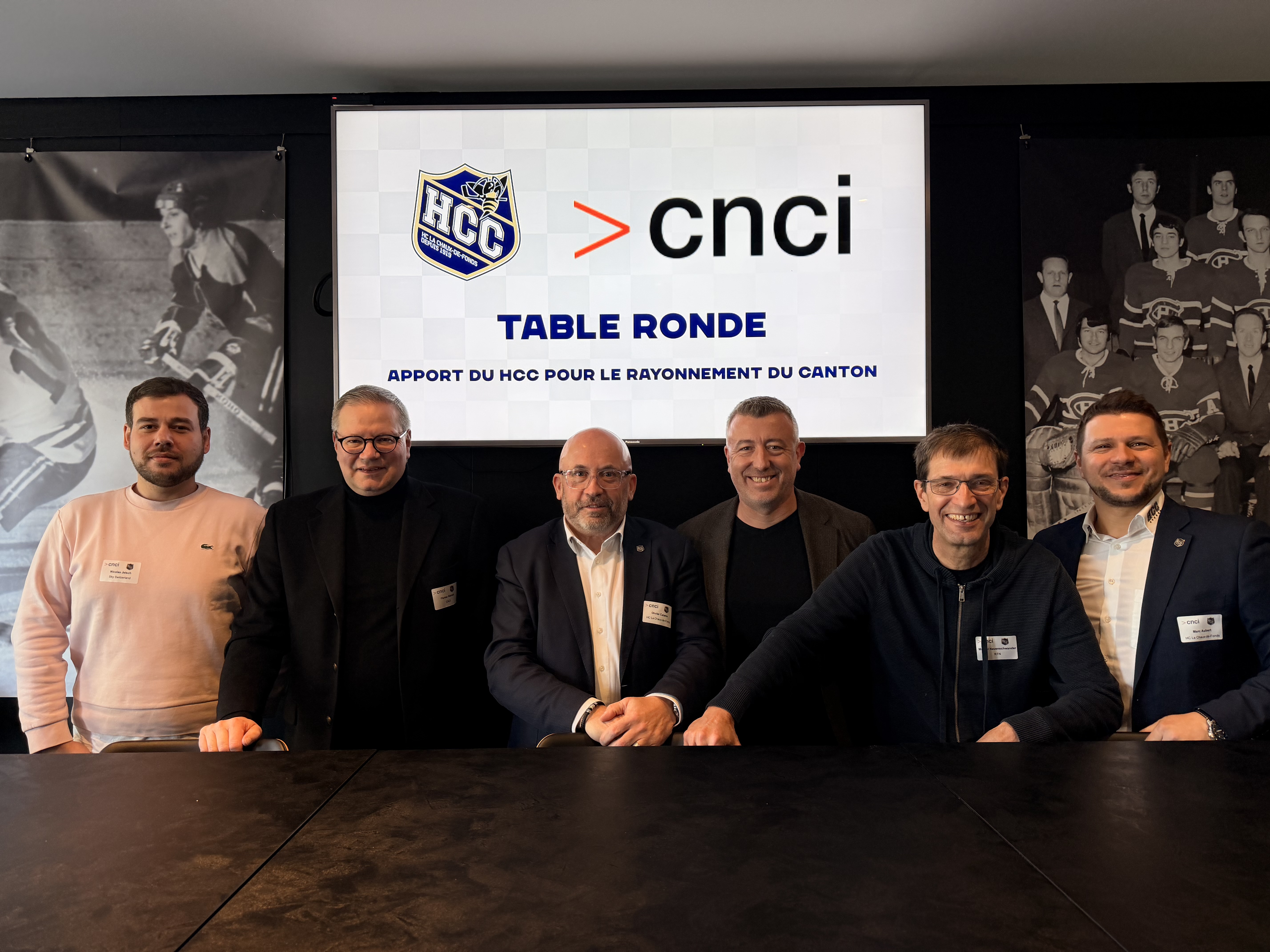 Le rôle d’un club sportif professionnel dépasse largement le cadre d'un stade, d'une salle ou d'une patinoire : son impact économique et social peut bénéficier à une région entière. Dès lors, "quel est l’apport d’une organisation comme le HCC pour le rayonnement de notre canton?". A cette question ont répondu cinq personnalités: Olivier Calame, Président du HC La Chaux-de-Fonds, Nicolas Jelsch, Directeur des sports de Sky Switzerland, Florian Németi, Directeur CNCI, Pascal Schluechter, Responsable Marketing et Sponsoring à la BCN, et chargé de cours « Marketing sportif » à l’Université de Neuchâtel, Marcel Neuenschwander, journaliste sportif chez RTN. L'événement, organisé dans le cadre du partenariat CNCI – HCC, a eu lieu à la Business Loge de la patinoire des Mélèzes le 16 janvier passé. Marc Aubert, Directeur commercial & marketing du HC La Chaux-de-Fonds (membre CNCI) a animé la table ronde au cours de laquelle les messages suivants ont été délivrés.