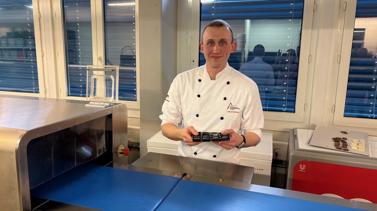 À seulement 30 ans, Samuel Müller affiche déjà un parcours remarquable. Passionné de pâtisserie depuis l’âge de 13 ans, d’abord autodidacte, il obtient un CFC de pâtissier-confiseur chez Wodey Suchard à Neuchâtel, avant de se former dans des établissements prestigieux tels que l’Hôtel de Ville de Crissier et la Maison Wenger au Noirmont. Ancien chef chez le chef étoilé Damien Germanier à Sion, il nourrit depuis toujours un fort esprit entrepreneurial. Aujourd’hui, entouré de ses associés et investisseurs, dont Ardeschir Dabaghchian avec le Groupe D, il développe sa marque avec ambition : une boutique a récemment ouvert à Genève et un nouveau laboratoire et une boutique en centre-ville de Neuchâtel sont prévus.