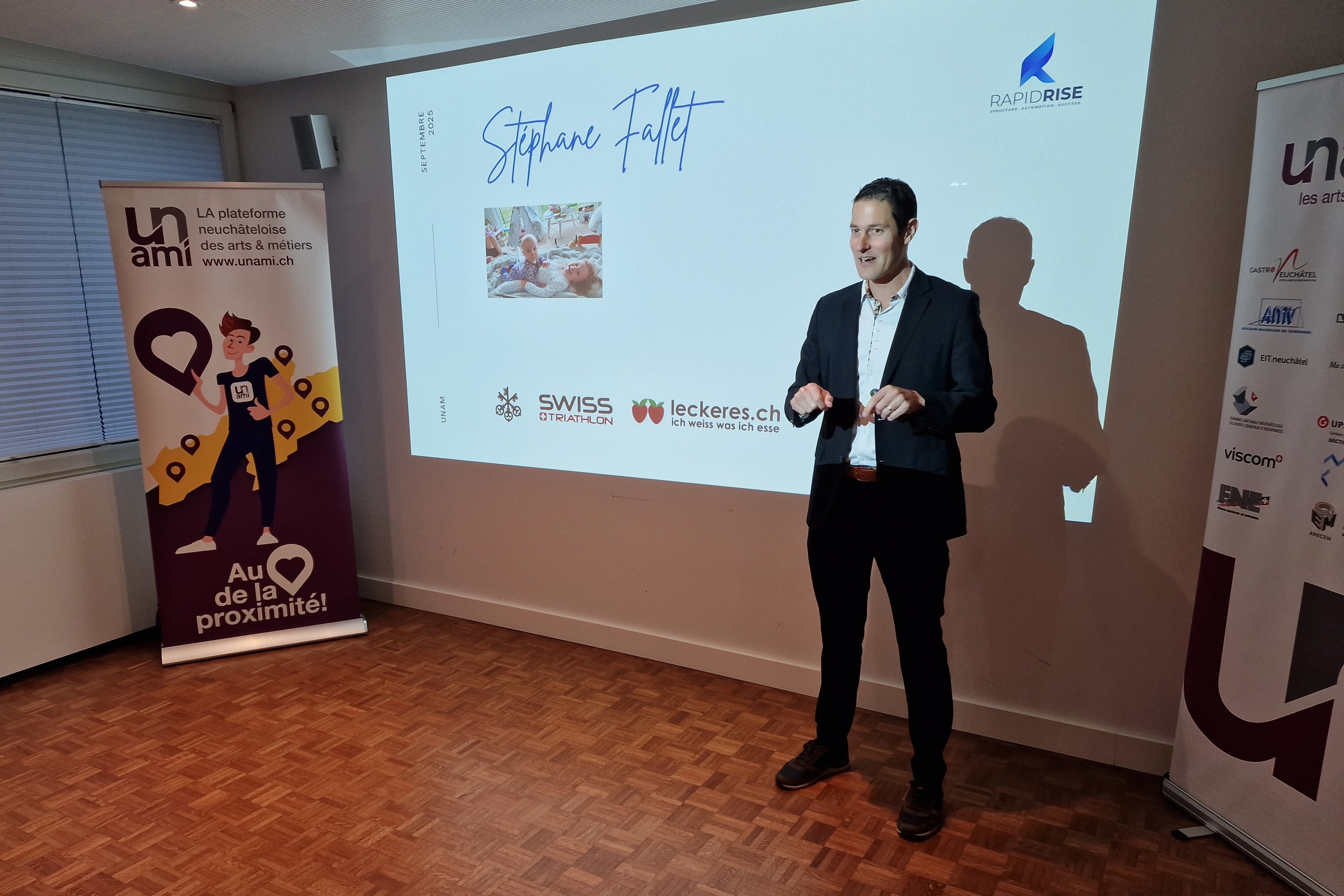 Grâce à l’IA, comment procède un artisan de la hi-fi pour enregistrer des commandes, produire à la demande et commercialiser ses produits en Suisse et dans le monde entier ? Grâce à l’IA encore, comment un garagiste sélectionne-t-il ses meilleurs prospects ? Grâce à l’IA toujours, comment un hôtel fait-il la nique aux grandes plateformes de booking ? Grâce à l’IA enfin comment une entreprise de la construction attire-t-elle de l’attention sur les réseaux ? En répondant à ces questions avec des cas réels, Stéphane Fallet de Rapid Rise a démontré le potentiel de l'IA pour des PME des arts & métiers. En ouverture, Mario Stoppa (Stoppa Frères – Plâtrerie – Peinture) a répondu à la question: "L’IA, c’est quoi pour moi ?"