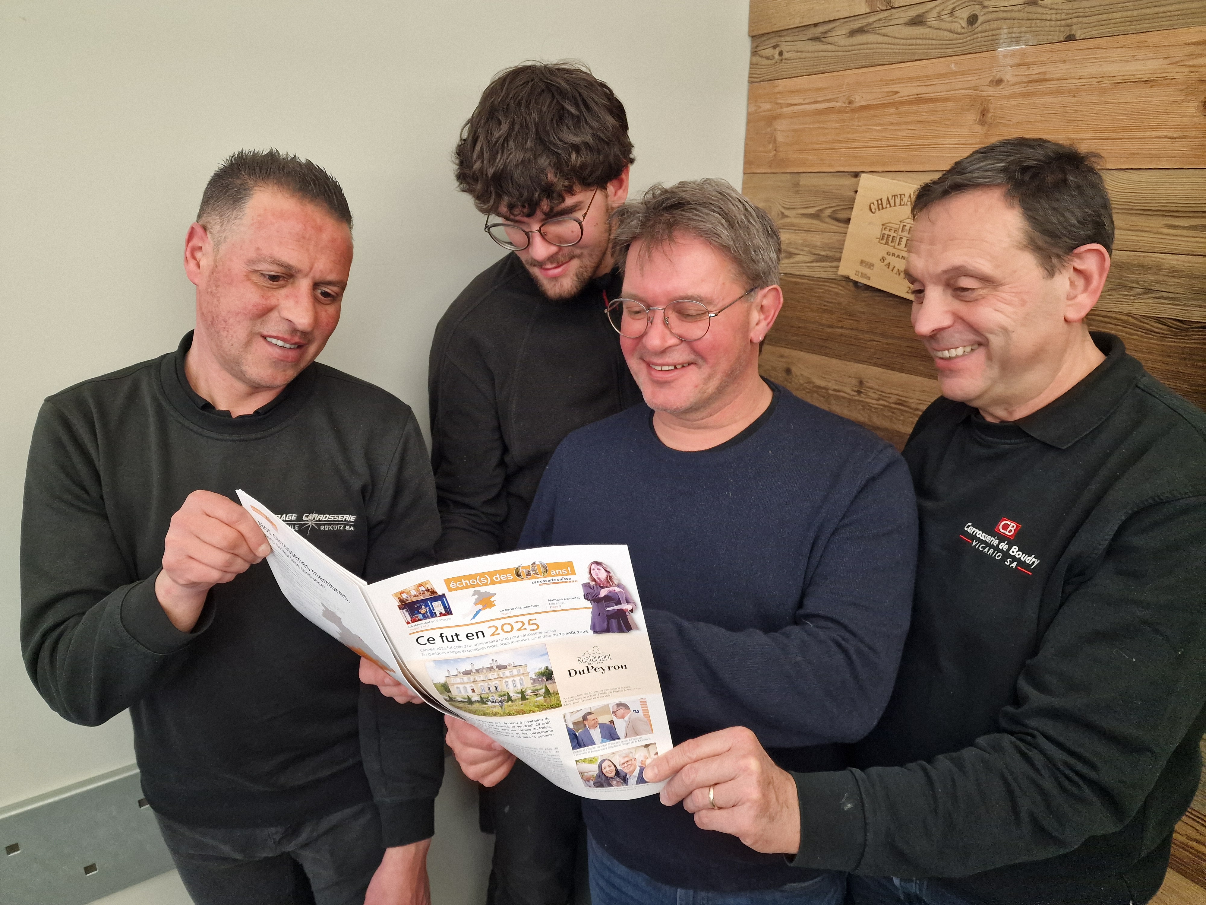 En 2025, carrosserie suisse Neuchâtel JU BE fr. a fêté ses 60 ans au Palais DuPeyrou. Désireuse de laisser une dernière trace de cette soirée marquante, l’association des carrossiers a publié une plaquette souvenir intitulée « écho(s) des 60 ans ! ». Dans ce dépliant, 25 photos de la soirée paraissent avec un compte-rendu de la fête et des extraits des déclarations des intervenenant-e-s.